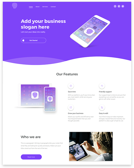 The following templates are a selection of the standard Duda templates, ready to be customised. Browse from the gallery and complete your details with template choice to get started.